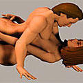 男は仰向けに横たわる。女が男の片脚を股の間に抱え込んで腰を下ろす。抱え込んだ男の片脚を上に引き寄せ、これにすがって女が腰を使う。